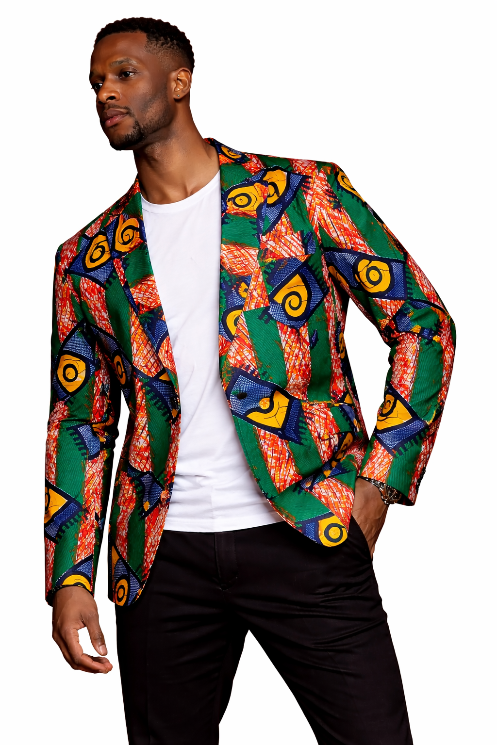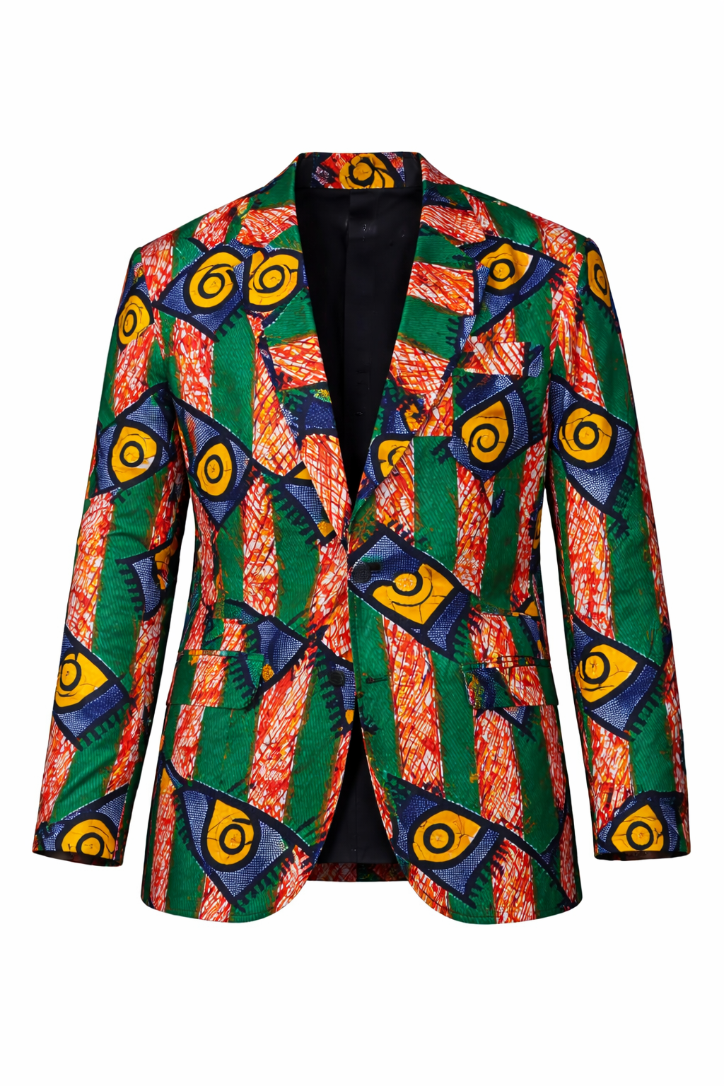 Deze groene Afrikaanse blazer ‘Victoire’ is een toonbeeld van elegantie en vakmanschap. De blazer is perfect gesneden voor een moderne pasvorm en beschikt over twee zakken aan de voorkant. Een ideaal kledingstuk voor de modebewuste man.