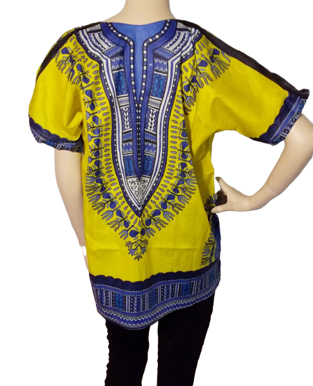 Prachtige gele Dashiki top, perfect voor zowel dames als heren. Deze traditionele Afrikaanse kleding is gemaakt van hoogwaardige stof en biedt een comfortabele pasvorm. Ideaal voor festivals, culturele evenementen of als stijlvolle casual outfit. Een zonnige en energieke kleur die overal opvalt!