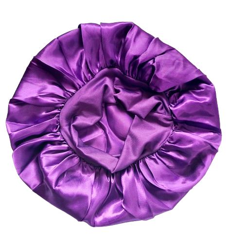 Paarse bonnet voor optimale haarbescherming en comfort.